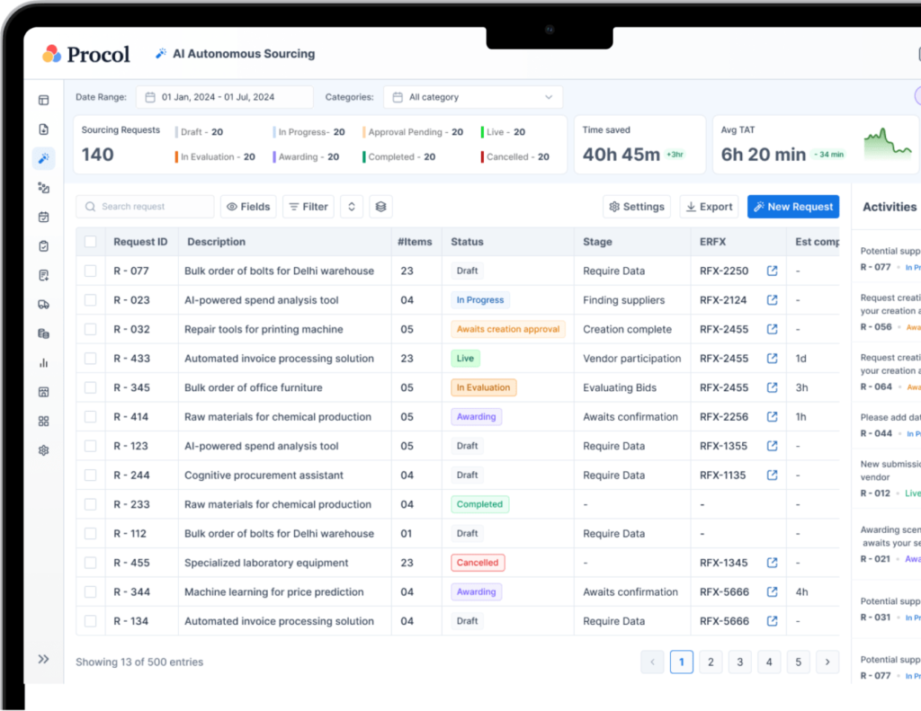 Eliminate silos by connecting everything from sourcing to payments on a single platform. Get complete visibility and control across procurement stages.