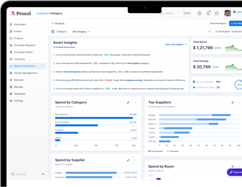 From sourcing to final payment—Procol streamlines entire process to drive visibility and results for procurement and finance teams.
